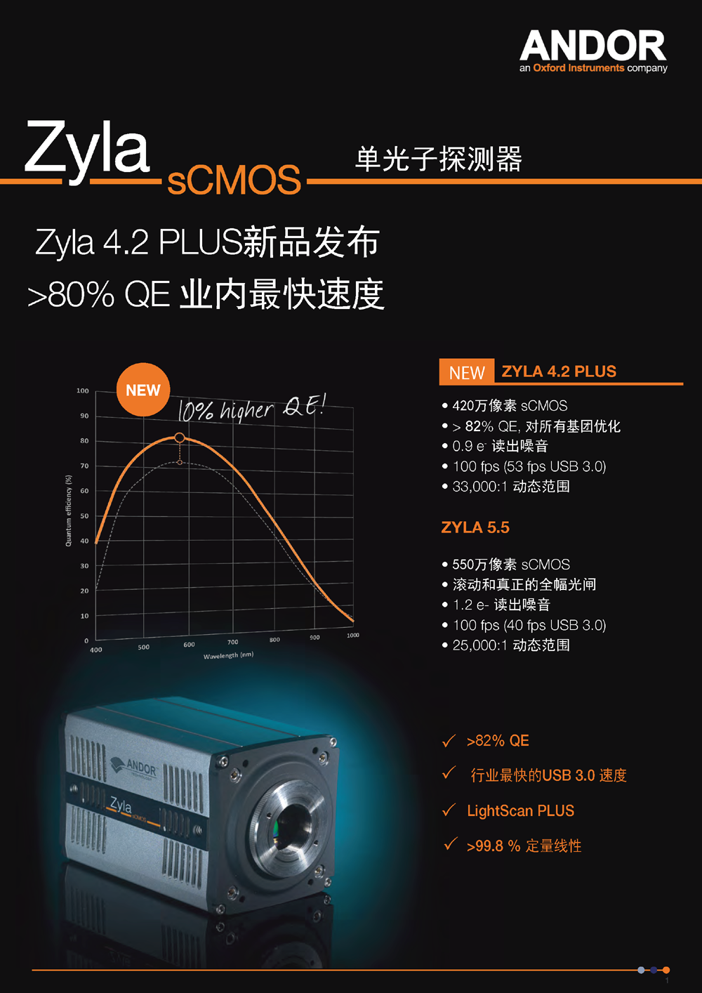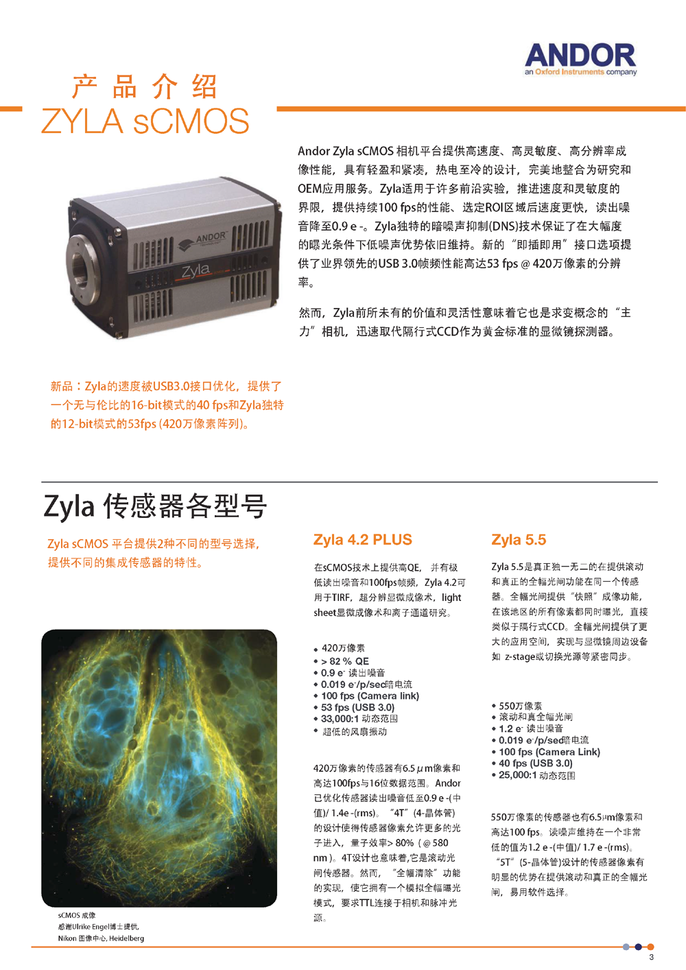 【摄像头】Andor Zyla 5.5 USB3.0 sCMOS 单光子探测器