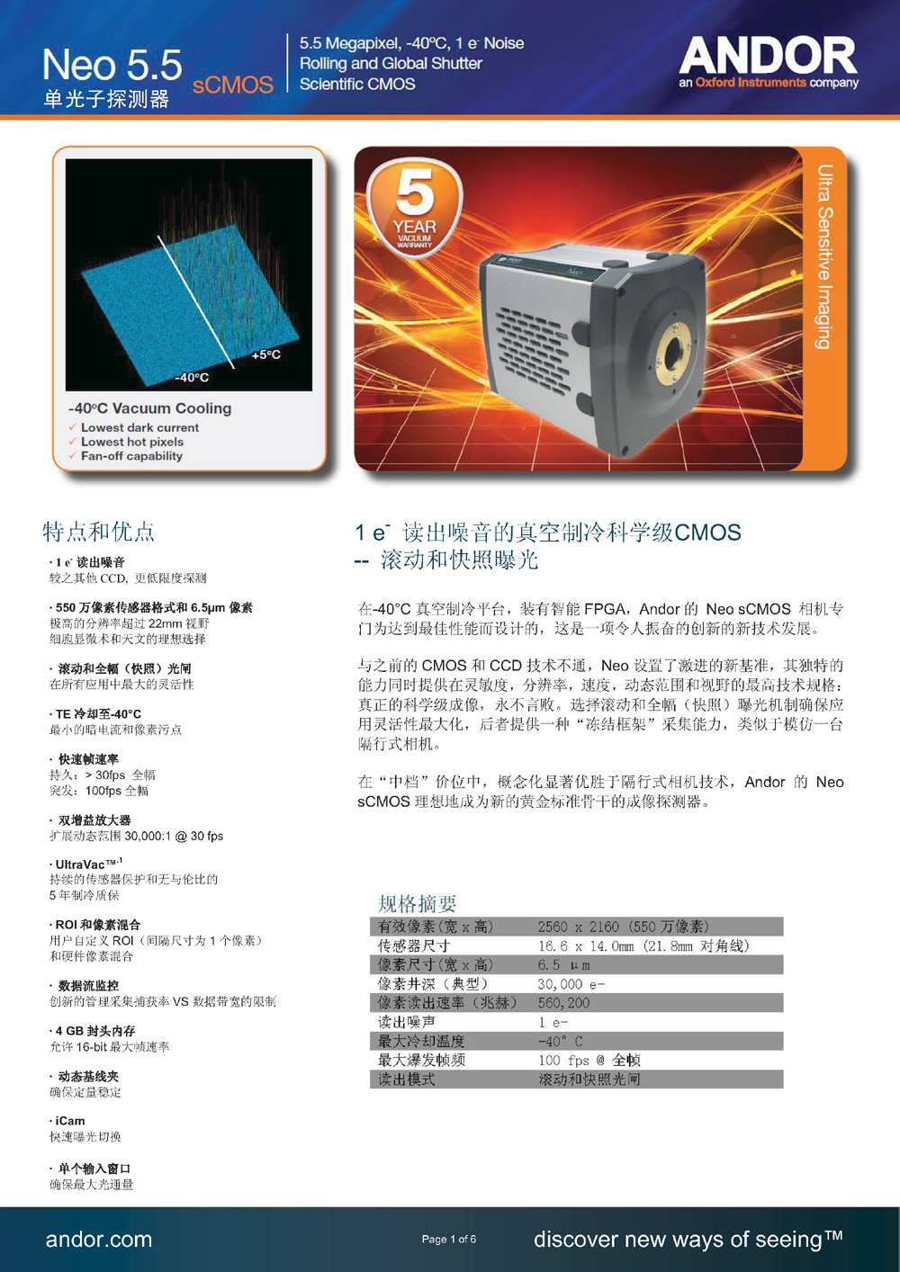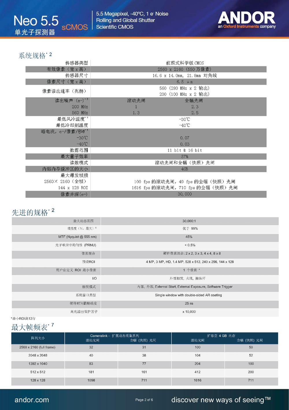【摄像头】Andor Neo 5.5 sCMOS 单光子探测器