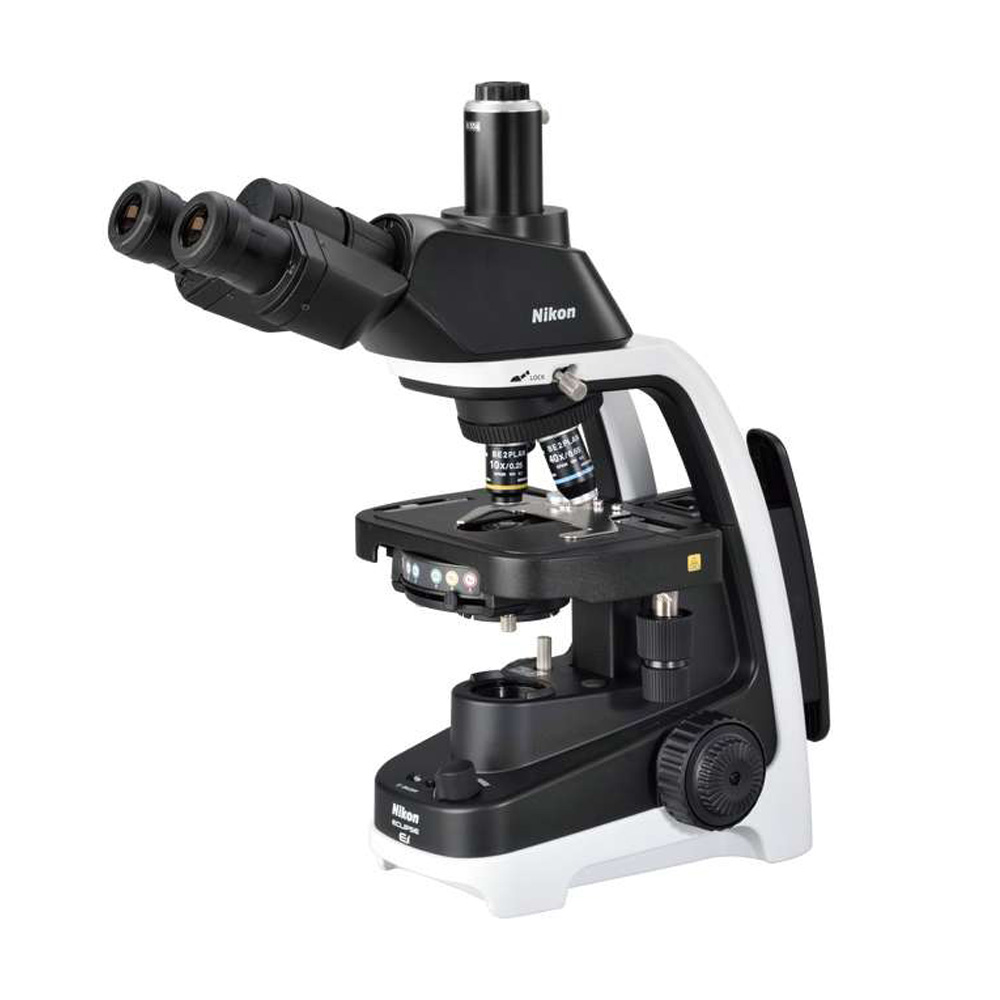 全新一代尼康Ei生物显微镜秉承了尼康光学的高端机型优秀元素,并实现了轻量化设计、便于使用教学、操作便于记忆、部件结构简单易懂、电线容易收纳、搬运简单、人体工程学设计等诸多优秀元素。特别适和中、高等院校的教学和实验室进行动植物细胞和细菌、微生物、浮游动植物等的观察。产地:中国南京,物镜:BE2 PLAN平场4X、10X、40X,100X,目镜:10X/20,照明光源:长寿命复眼LED,钢丝传动机械载物台,阿贝聚光镜N.A 0.1~1.25。具备三目摄影通道,可与C接口连接安装摄像系统。