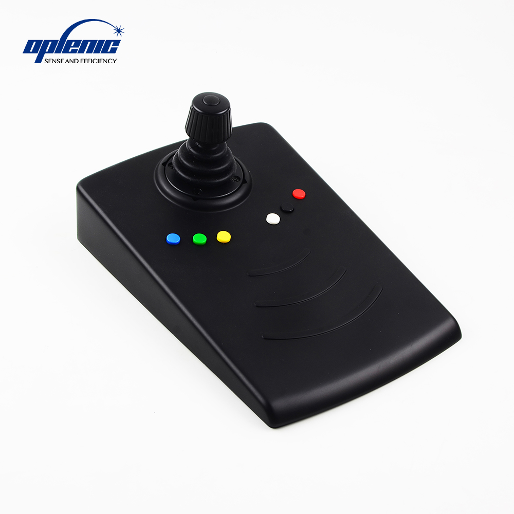 欧普林M-CP1物镜控制器可支持四孔、五孔、六孔电动物镜转盘的切换,按键颜色可根据物镜倍率色环进行顺序匹配。采用非薄膜机械按键,使用寿命可达20万次。先进的7相摇杆手柄支持电动载物台的前-后-左-右运动(内置压力传感器可根据力度改变加速度),旋转可控制Z轴的升降,并配备一键复位功能,快速将载物台移动到起始坐标(0,0),控制器需要与驱动器配合使用,并可通过电脑程序同时操控。