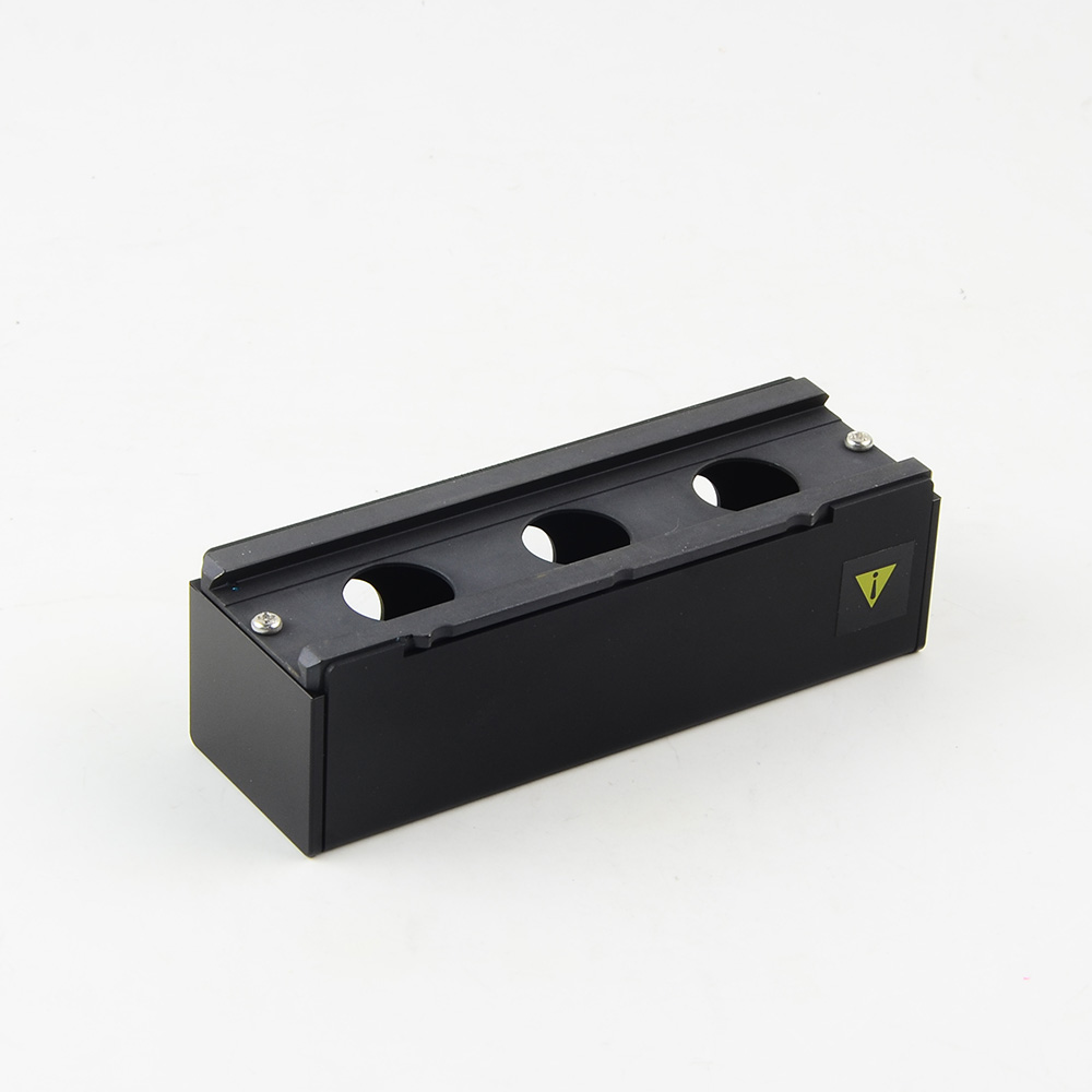 适用于徕卡DMiL专用荧光显微镜的激发块空盒抽屉,内有三组滤镜座空位,通常可装2块,预留一组空位给明场使用,使用标准S尺寸的滤光片盒,购买前请先确认滤光片盒块尺寸规格。我公司有进口品牌滤光片(SEMROCK、CHROMA、OHA)可供选购,选购套装价格更实惠。
