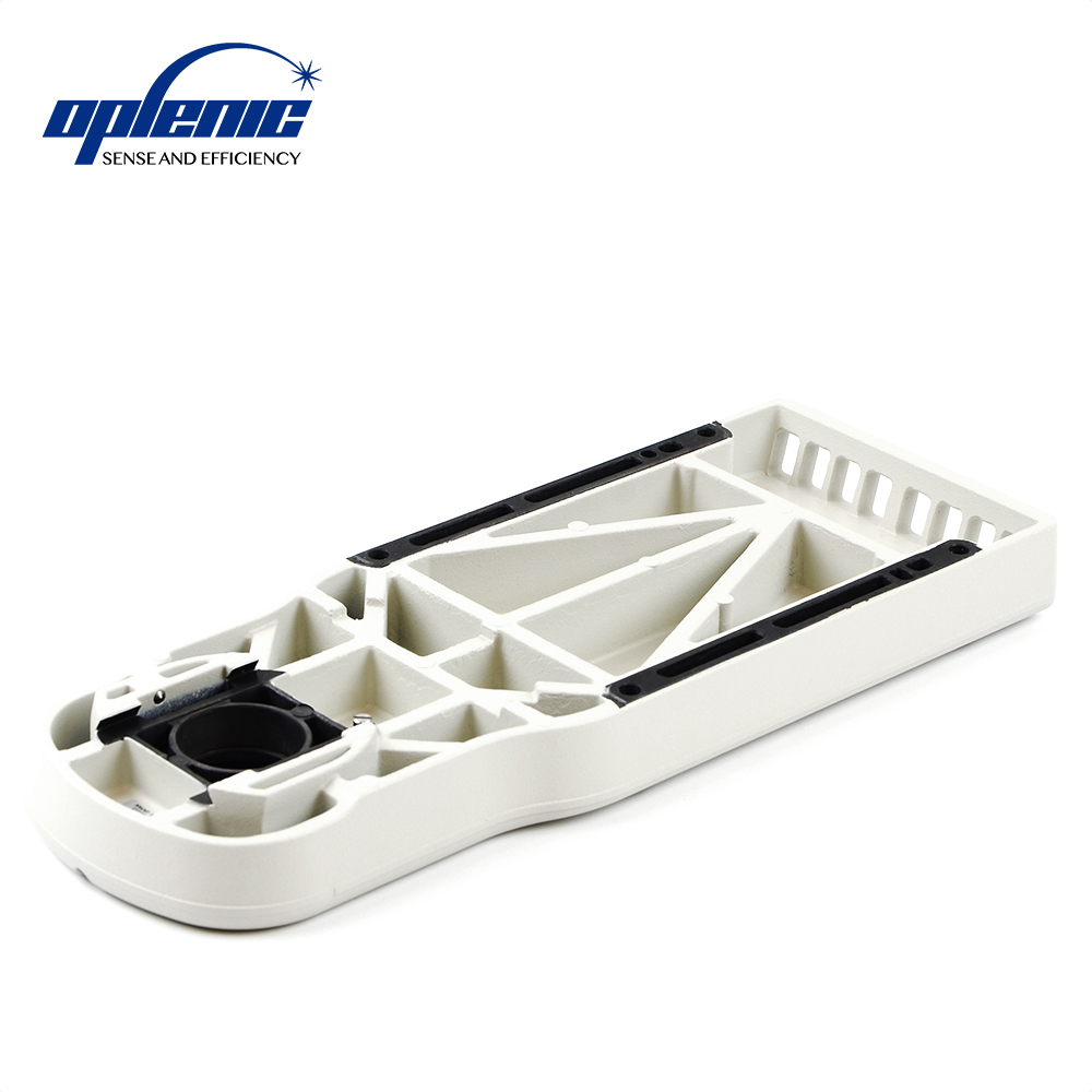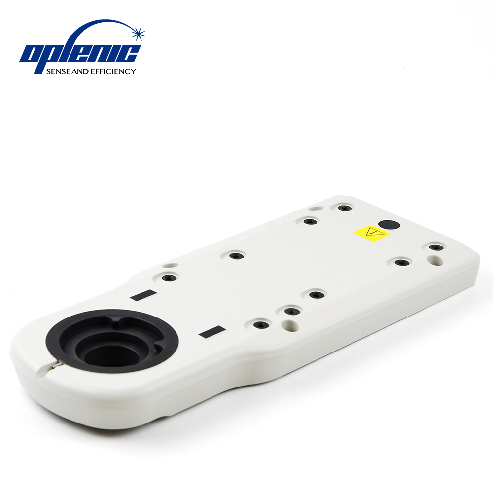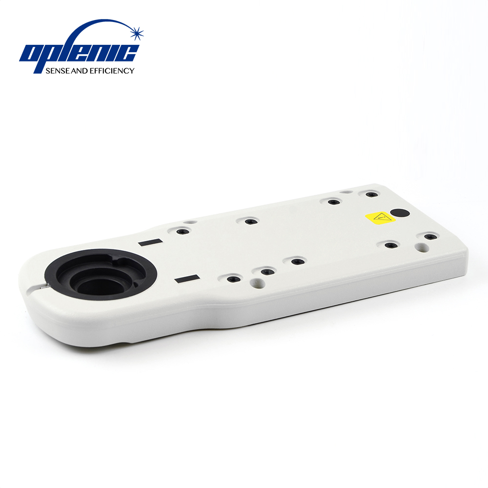 用于Ni机身安装物镜转盘使用的平板镜臂,通过四枚M4螺栓固定在机身上,上方圆形燕尾用于安装观察筒,下方滑槽燕尾用于安装物镜转盘。