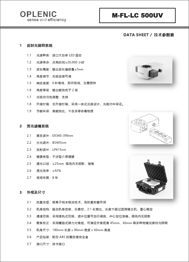 【LED荧光装置】欧普林OPLENIC®徕卡正置显微镜荧光模块单色LED荧光装置M-FL-LC 500UV(进口机芯三年质保)
