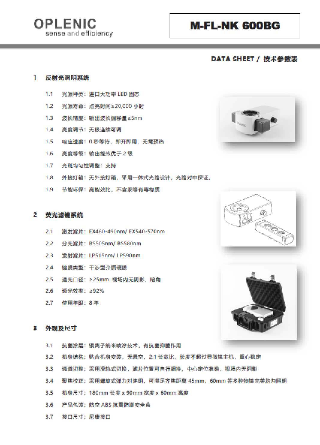 【LED荧光装置】欧普林OPLENIC®尼康正置显微镜荧光模块双色LED荧光装置M-FL-NK 600BG(进口机芯三年质保)