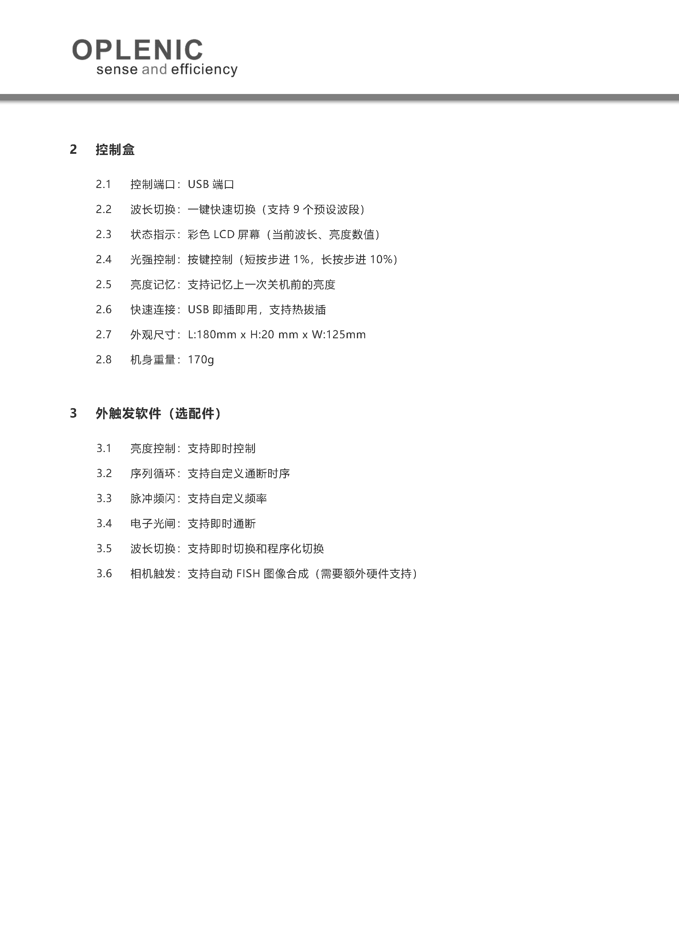 2.7 外观尺寸:L:180mm x H:20 mm x W:125mm