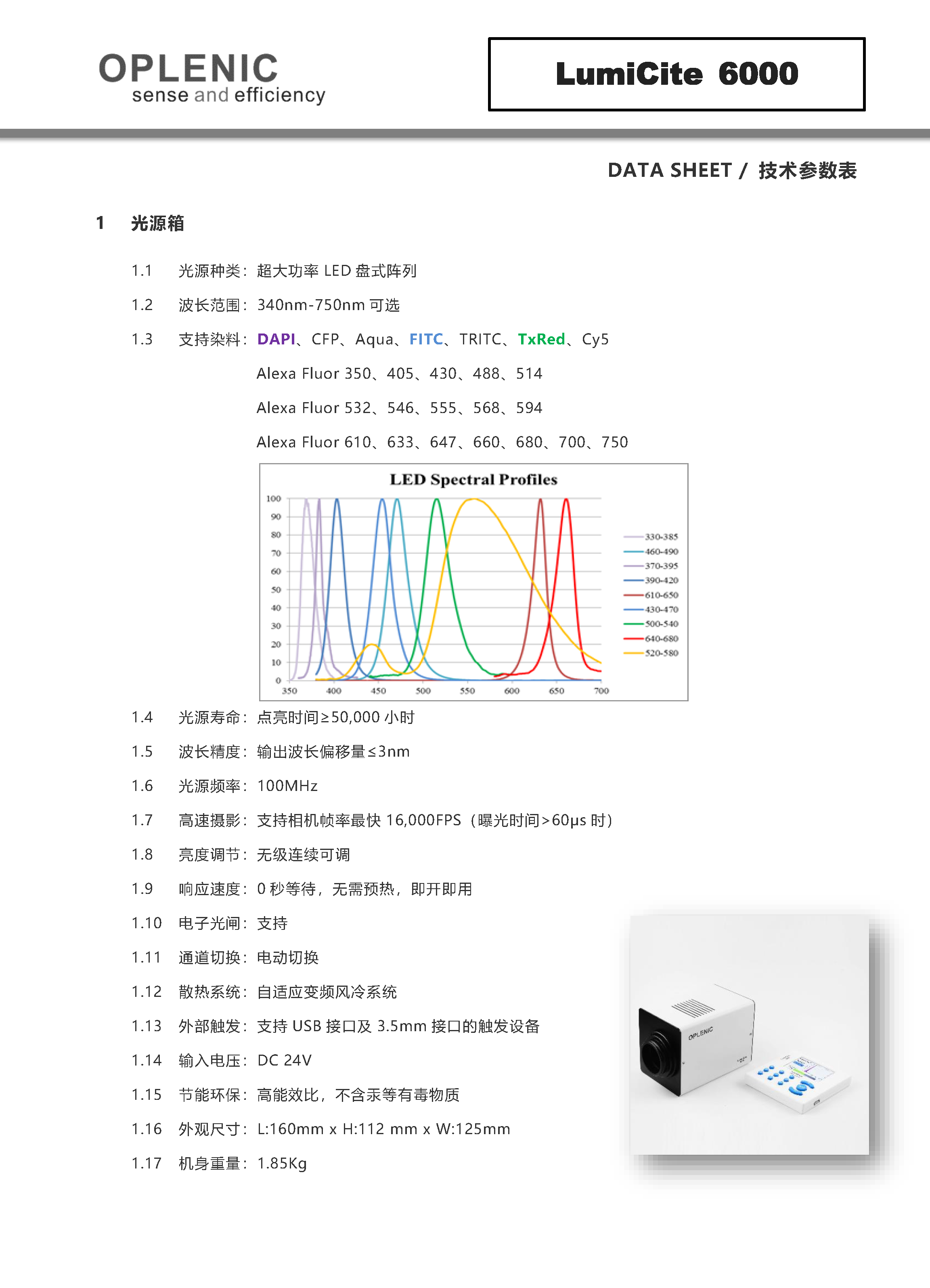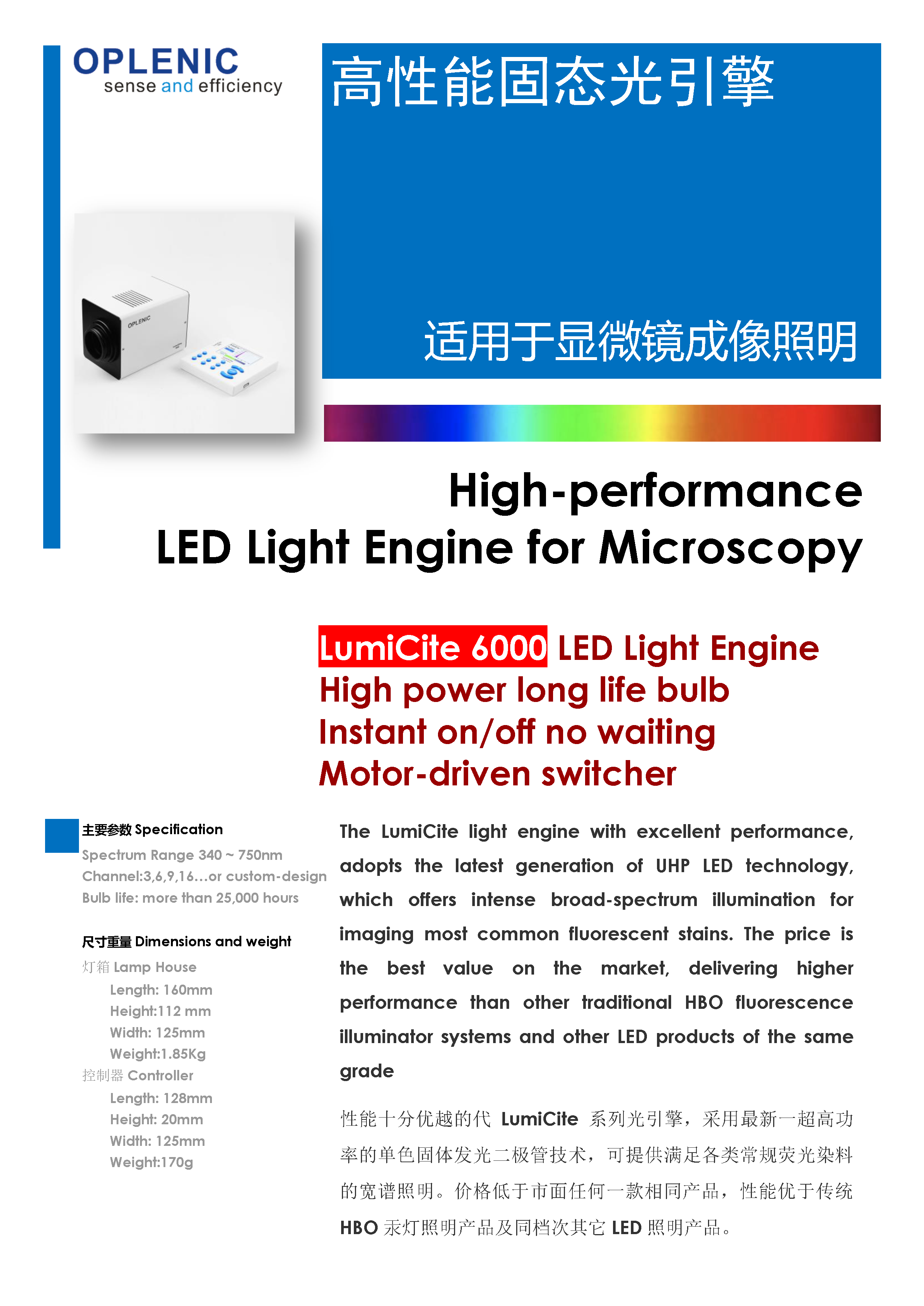 【固态光源】欧普林OPLENIC®LumiCite 6000超大功率长寿命LED荧光固体光源(6色)